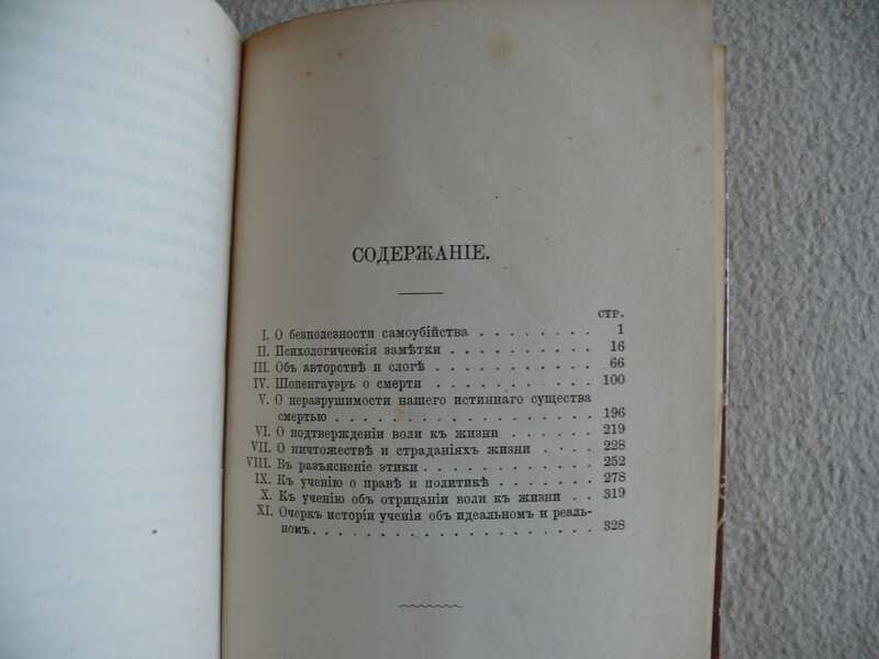 Содерж.: Т. 1. Афоризмы и максимы в руководство житейской мудрости; Мысли: О физиономике. О женщинах. О страданиях мира. В дополнение к этике. О критике, суждении, одобрении и славе. Об учености и ученых. О самостоятельном мышлении. О кажущемся вмешательстве судьбы в жизнь человека. Т. 2. Мысли: О бесполезности самоубийства. Психологические заметки. Об авторстве и слоге. Шопенгауэр о смерти. О неразрушимости нашего истинного существа смертью. О подтверждении воли к жизни. О ничтожестве и страданиях жизни. В разъяснение этики. К учению о праве и политике. К учению об отрицании воли к жизни. Очерк истории учения об идеальном и реальном