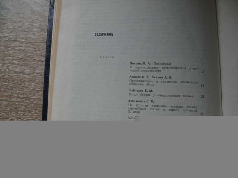 Сборник посвлщен исследованию истории материальной культуры древних и средневековых обитателей территории Казахстана. В частности, рассматриваютсл вопросы происхожденил древнетюркской рунической письменности, семантики иссыкского головного убора, культа барана у сырдарьинских племен и истории движенил кочевников евразийских степей в первой половине XI в. В книге публикуютсл новые материалы раскопок последних лет, результаты работы лаборатории археологической технологии, заметки о находках и сведенил по отдельным частным вопросам археологии. Представлены почти все периоды казахстанской археологии: палеолит, эпоха бронзы, период ранних и поздних кочевников. Книга рассчитана на специалистов-археологов, историков, студентов и читателей, интересующихсл проиілым Казахстана. Тираж 1 900 экз.