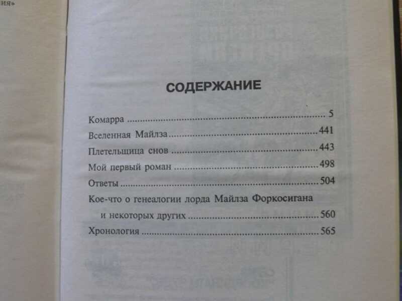 Действие книг цикла происходит в одной воображаемой вселенной и вращается вокруг истории одной семьи — по фамилии которой эти романы и получили собирательное название «Саги о Форкосиганах». Большая часть этих книг посвящена приключениям Майлза Форкосигана, сына высокопоставленного аристократа с милитаризированной планеты Барраяр.... Содержание : 1. В свободном падении. Этан с планеты Эйтос. Цетаганда. 2. Ученик воина. Игра форов. 3. Границы бесконечности. Братья по оружию. 4. Танец отражений. Память. 5. Комарра. Вселенная Майлза. 6. Гражданская кампания. Примечание: В русских изданиях роман «Границы бесконечности» оказались поставлены перед романом «Братья по оружию», вопреки хронологии мира.
