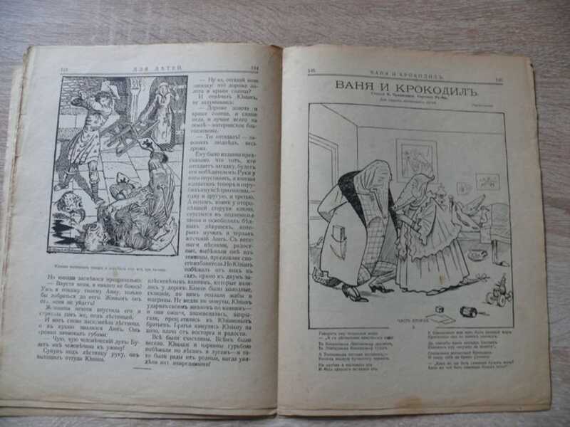 Первая публикация `Ваня и Крокодил` Корнея Чуковского с иллюстрациями Ре-Ми,начало в 1 номере -окончание в 12-м. Журнал издавался Корнеем Чуковским, как приложение к Ниве. Из авторов сам Чуковский, Ксения Богуславская Сосулька. А. Стерн Дачники. С.Чехонин, Ре-Ми Практически все - первые прижизненные публикации.