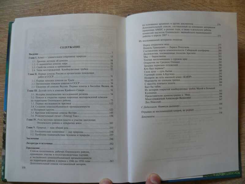 Развернутый автограф автора. Книга способствует восстановлению исторической справедливости в оценке роли коренного населения Оленекского района в поиске, открытии и разведке первых коренных месторождений алмазов, в создании сырьевой базы алмазодобывающей промышленности и сохранения памяти о всех тех, кто трудился бок о бок с людьми разных профессий и национальностей.