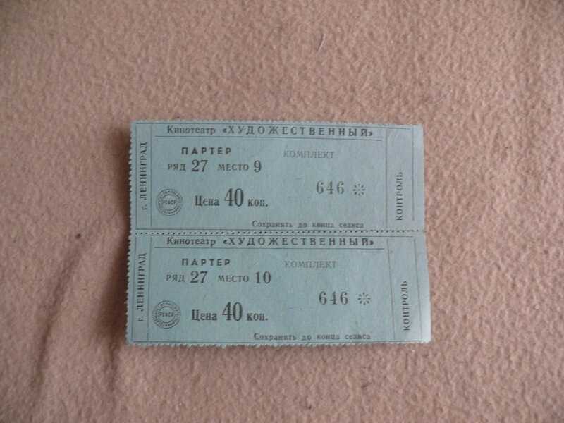 Два билета в кинотеатр "Художественный". Ленинград