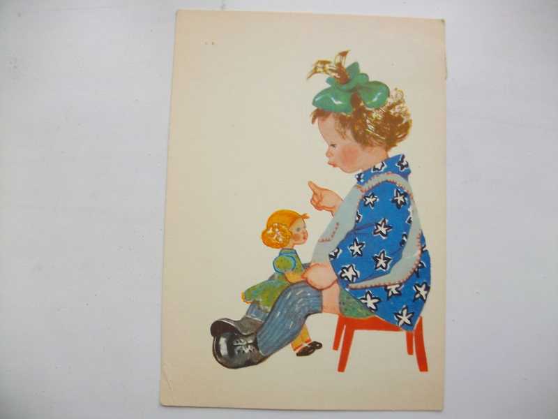 Девочка на сдетском стульчике с куклой.