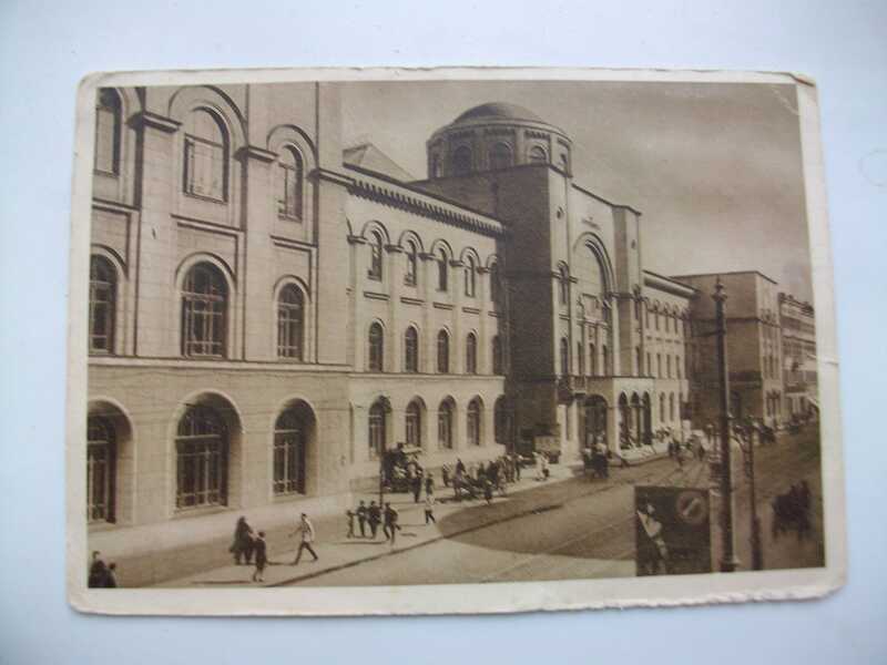 Черно белая карточка с видом на почтамт и улицу с больши количеством людей. Цена действительна только при покупке на сумму не менее 150 рублей.