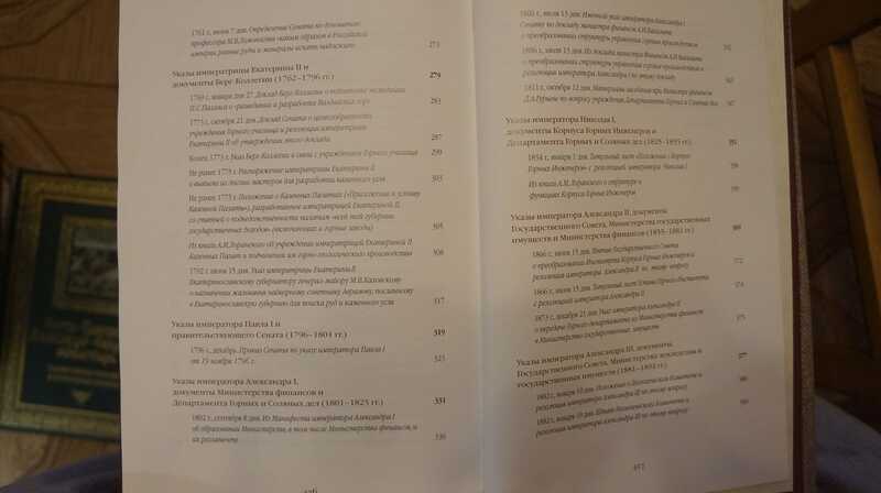 Юбилейная книга явилась первым опытом обширной публикации первоисточников по отечественной горной истории. Опубликованы были только наиболее важные решения руководителей государства и горной промышленности, такие как указы императоров, документы Берг-коллегии, документы Приказа рудокопных дел, Верховного тайного совета, министерств, касающиеся горного надзора, документы Генерал-Берг-Директориума, Департамента горных и соляных дел.....мелованная бумага много иллюстраций и исторических документов.