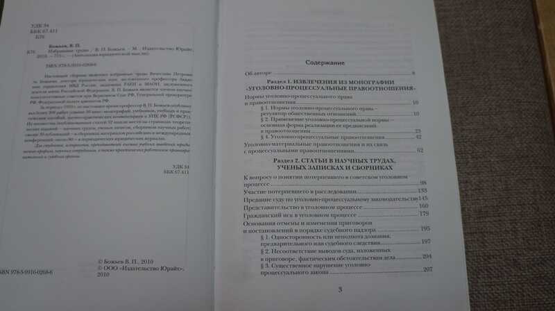 Настоящий сборник включает избранные труды Вячеслава Петровича Божьева, доктора юридических наук, заслуженного профессора Академии управления МВД России, академика РАЕН и МАОН, заслуженного деятеля науки Российской Федерации. В.П.Божьев является членом научно-консультативных советов при Верховном Суде РФ, Генеральной прокуратуре РФ, Федеральной палате адвокатов РФ. За период с 1959 г. по настоящее время профессор В.П.Божьев опубликовал более 300 работ (свыше 50 книг: монографий, учебников, учебных и практических пособий, научно-практических комментариев к УПК РФ (РСФСР)). Из множества опубликованных статей 52 нашли место на страницах теоретических изданий - научных трудов, ученых записок, сборников научных работ; свыше 30 публикаций - в сборниках материалов российских и международных конференций; около 80 - в периодических юридических журналах.