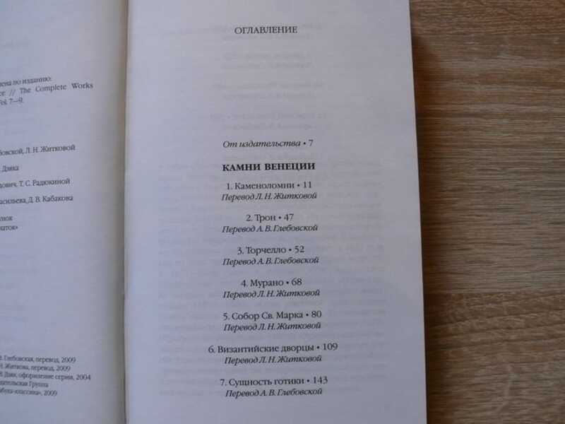 Книга `Камни Венеции`, одно из наиболее значимых и объемных сочинений известного английского историка и теоретика искусства, прозаика, поэта, художника, литературного и художественного критика Джона Рескина, увидела свет в 1851 - 1853 гг. В ней рассматривается многовековая эпоха расцвета венецианского зодчества от раннего Средневековья до позднего Ренессанса и дается блестящий анализ присущих ей основных архитектурных стилей. Помимо подробных научных изысканий и теоретических рассуждений, автор включил в полное, трехтомное, издание своего труда исчерпывающий справочный материал, касающийся отдельных личностей, зданий, терминов и пр. Сразу же по выходу из печати книга приобрела огромную популярность не только среди специалистов, но и у широкого читателя, став незаменимым путеводителем по городу. Издательство сочло возможным выпустить в серии `Художник и знаток` сокращенный вариант `Камней Венеции`, сосредоточив внимание на описании архитектурных памятников и их стилистических особенностей. В тексте использованы рисунки и акварели самого Рескина, на вклейке приводятся цветные фотографии и репродукции.