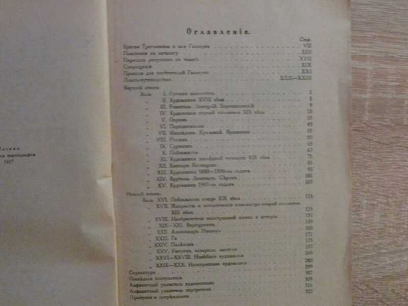 Последнее и лучшее издание каталога до революции. В книге портрет П. М. Третьякова на отдельном листе и множество графических работ русских художников, использованных в качестве заставок. Приведен план-путеводитель по галерее, алфавитный список художников и алфавитный указатель портретов.