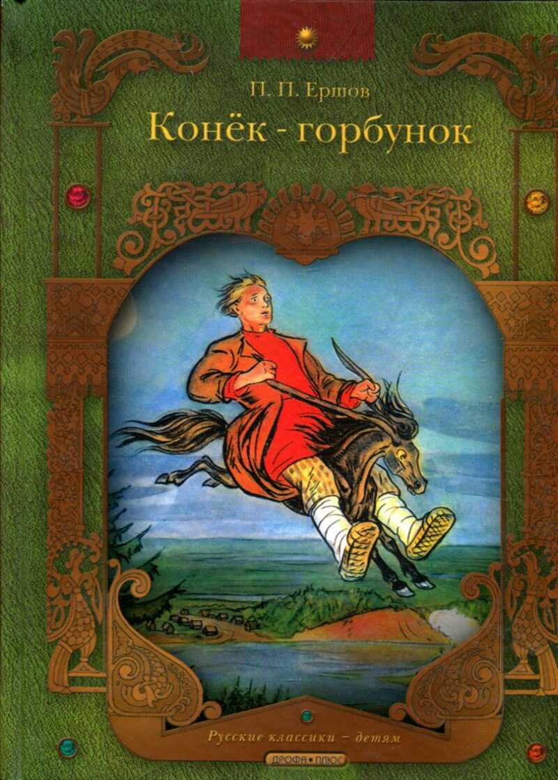Сказка в стихах. На поле крестьянской семьи стала пропадать пшеница. Караулить её отправляются по очереди трое сыновей. Младшему Ивану удаётся поймать вора, им оказалась кобылица с золотой гривой. Она попросила отпустить её взамен на трёх коней, одним из которых и стал конёк-горбунок. Иван соглашается, и с того дня в его жизни начинаются приключения.