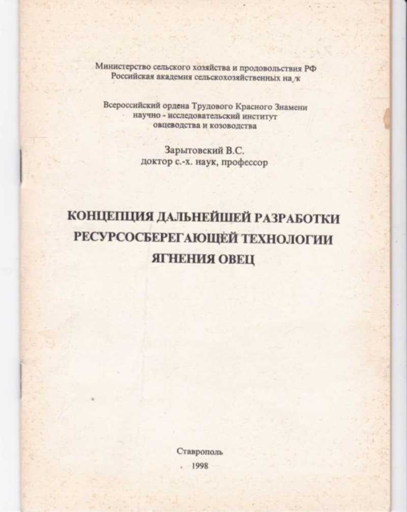 - Концепция дальнейшей разработки ресурсосберегающей технологии ягнения овец