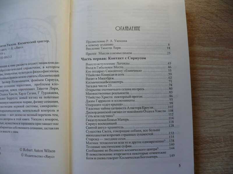 Каждая цивилизация в пике расцвета создает энциклопедический труд - нейрогенетический справочник, в котором суммируются знание, технология, культура и философия эпохи. Такой книгой с полным правом можно считать `Космический триггер` Уилсона. Заговор Иллюминатов, феномен Сириуса, НЛО, изменяющие сознание наркотики, проблемы клонирования и бессмертия, новое `прочтение` Тимоти Лири, Алистера Кроули, Олдоса Хаксли, Карла Сагана, Г. Гурджиева, Алана Уотса, Уильяма Берроуза, новый взгляд на пейотные путешествия, современную квантовую теорию, физику сознания, восемь контуров эволюции нервной системы, синхронистичность, магию, парапсихологию, ментальный контроль и межзвездную телепатию - вот далеко не полный перечень тем, которые освещаются автором в этой книге. Уилсон с юмором, непредубежденностью, мужеством и терпением приглашает нас в путешествие по лабиринтам собственного сознания, заставляя нас расти и меняться вместе с ним.