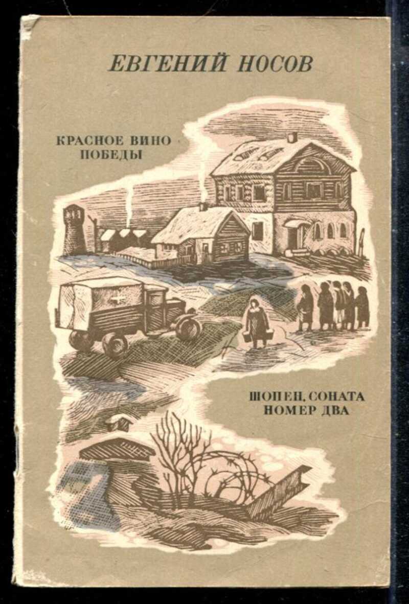 Военная история молодого рассказчика в произведении повторяет факты из биографии самого писателя: после прорыва восточнопрусских укреплений, на подступах к Кенигсбергу (ныне Калининград), в феврале 1945 г. Е.Носов был тяжело ранен, и его, вместе с другими бойцами, подобрали в Мазурских болотах, «промозглых от сырых ветров и едких туманов близкой Балтики». Артдивизион, в котором воевал Е.Носов, отбивался от наседающих фашистcких танков, выкатив орудия на полотно железной дороги. Вражеские автоматчики подобрались ночью к пушкам и выбили расчеты: танки пошли в атаку, сбрасывая орудия с полотна. После ранения Е.Носов попадает в госпиталь в подмосковный Серпухов, и через двадцать с лишним лет об этих днях напишется рассказ «Красное вино победы»: «...всенародное ликование и неподвижно лежащие в гипсовых панцирях тяжелораненые, искрящееся красное вино победы, выданное бойцам в честь такого дня, и один так и не выпитый стакан, стоящий на тумбочке солдата Копешкина, тихо и незаметно для окружающих скончавшегося от ран в самую минуту торжества». «В рассказе «Шопен, соната номер два»,писала «Литературная Россия»,вновь по крупицам, по односложным репликам матери, потерявшей почти всех детей-солдат, восстанавливается эпическая, щемящая душу, заставляющая о многом задуматься история целой семьи, выбитой войной под корень».