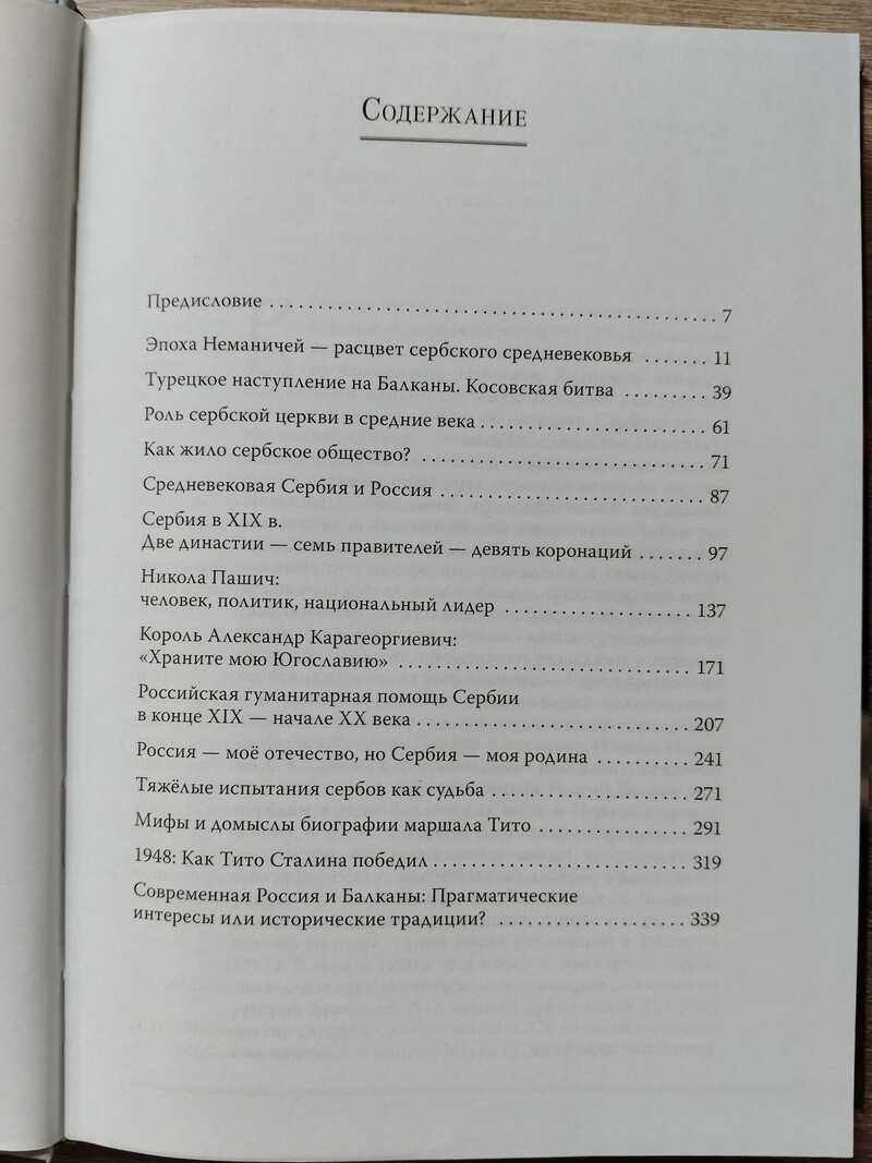 В книге рассказывается о важных и интересных событиях сербской истории, победах и поражениях в битвах, ярких личностях и русско-сербских отношениях. Начинается повествование с эпохи Неманичей, Косовской битвы, роли сербской церкви, жизни средневекового общества. XIX век представлен главными сербскими династиями того времени - Карагеоргиевичами и Обреновичами, а также выдающейся политической личностью, самым крупным политиком независимой Сербии и «строителем» Первой Югославии Николой Пашичем. История ХХ в. начинается с рассказа о неизвестной ранее гуманитарной помощи России балканским народам в годы Балканских войн и Первой мировой войны, а также о короле Александре Карагеоргиевиче, убитом заговорщиками 9 октября 1934 г. Значительный интерес представляет раздел о русских эмигрантах, нашедших на Балканах сначала временное пристанище, а потом и постоянное место проживания после революции в России 1917 г. Важное место в книге отводится личности Иосипа Броза Тито и рассказу о сути конфликта между СССР и Югославией в 1948 г. Заканчивается книга изложением позиции России в отношении балканских народов бывшей Югославии в 90-е годы прошлого и начале нынешнего века. Книга предназначена читателям, интересующимся историей православных славянских народов. Тираж 1000 экз.