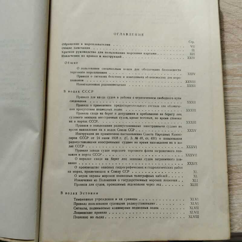 С картами на отдельных листах и многочисленными рисунками в тексте (маяки и другие примечательные объекты берегов). Полностью комплектный экземпляр. / / Лоция (от голландского loodsen — вести корабль) — предназначенное для мореплавателей описание морей, океанов и их прибрежной полосы. Включает в себя описания приметных мест, знаков и берегов, а также содержит подробные указания по путям безопасного плавания и остановкам у берегов с описанием средств и способов получения необходимых для плавания предметов и провизии. В настоящем издании лоция Балтийского моря описывается по состоянию на 1 апреля 1937 года. Помимо лоции, в издание включены руководство для пользования морскими картами, общий очерк, гидро-метеорологический обзор, извлечения из правил и инструкций — отдельно для советских вод, отдельно для Эстонии, Финляндии, Латвии. Издание сопровождается справочным отделом и алфавитным указателем объектов.