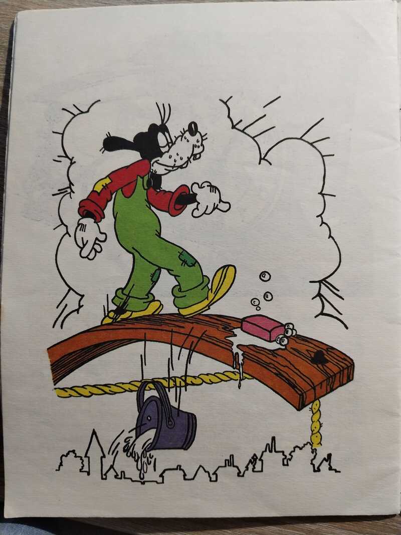 Один из первых советских комиксов по Диснею. Книжка рассказывает о том, как Микки-Маус и его друзья - утенок Дональд и собачка Гуфи чинили часы на башне главной площади города и какая история с ними приключилась.