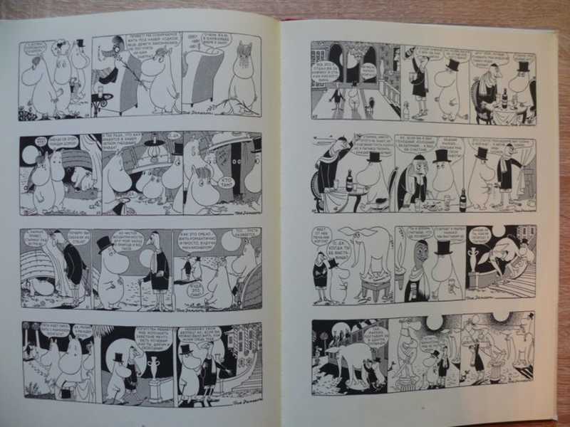 Комиксы черно-белые, рисунки автора, текст Ларса Янсона. Обложка твердая, обтянутая тканью