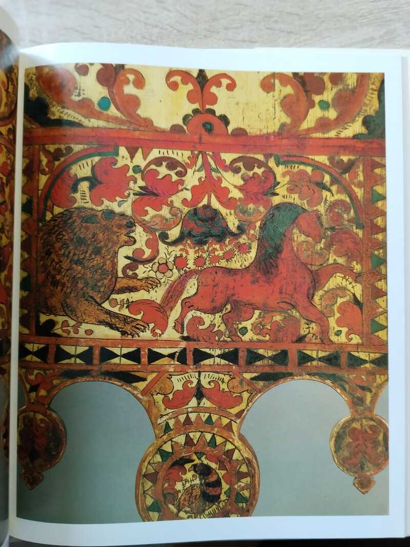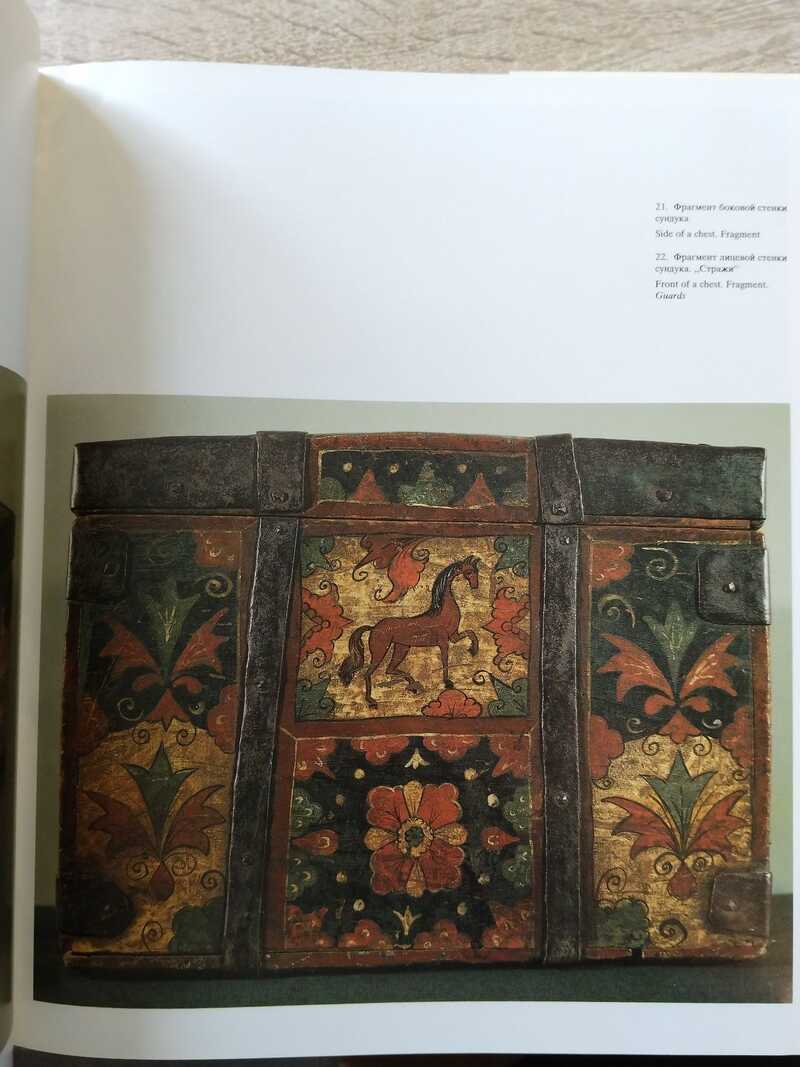 Отпечатано в ГДР. Крестьянские росписи Северной Двины - яркое и самобытное явление русского народного искусства. Еще в XIX веке в музеях Москвы и Петербурга были собраны богатые коллекции предметов крестьянского быта, украшенных этой росписью. Спрос на них был велик. `Роспись северодвинского типа` делится на три крупных, самостоятельных, вида росписи: пермогорская (растительный узор, белый фон), ракульская (желтый фон) и северодвинская белофонная роспись (крупный орнамент, много позолоты). Составители настоящего издания повествуют об истории этого искусства и наглядно знакомят читателя с образцами всех трех направлений, включив в альбом 126 цветных иллюстраций (названия на русском и английском языках) с комментариями.