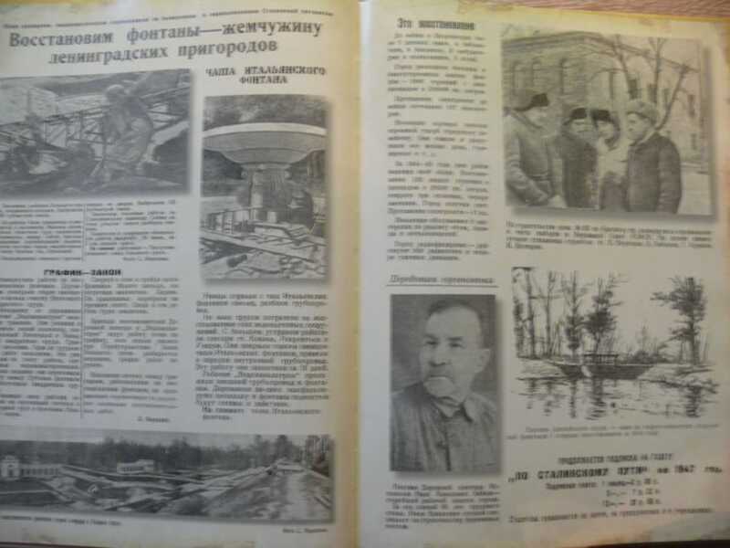 Книга представляет собой уникальный альбом, созданный по материалам Петергофской городской газеты “По сталинскому пути”. Эта газета печаталась небольшим тиражом и выходила всего два раза в неделю. После освобождения Петергоф лежал в развалинах, от всемирно известных дворцов остались только руины. О восстановлении всемирно известных памятников культуры,о подвиге реставраторов и жителей,о насущной и бытовой, послевоенной жизни знаменитого пригорода - день за днем,в формате городского листка.Основная часть книги-альбома представляет из себя факсимиле газетных страниц.Высокохудожественное оформление и прекрасная печать. Тираж 300 экз.