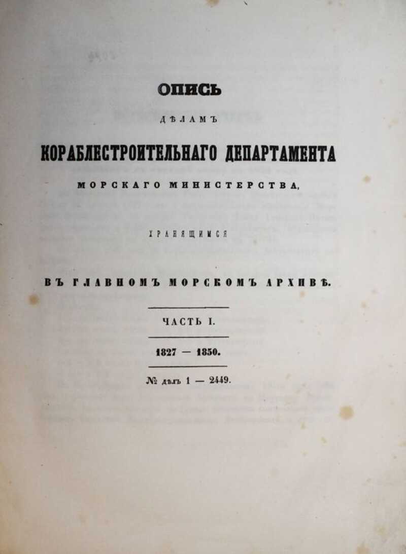 Опись делам Кораблестроительного департамента Морского министерства, хранящимся в Главном морском архиве. Часть I. 1827-1850 гг. №1-2442