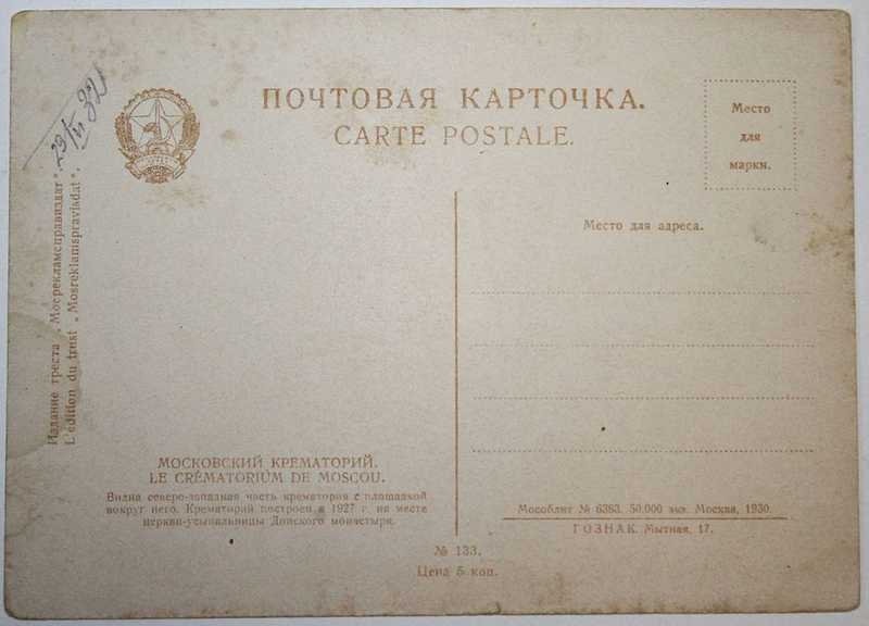 Почтовая карточка. Московский крематорий