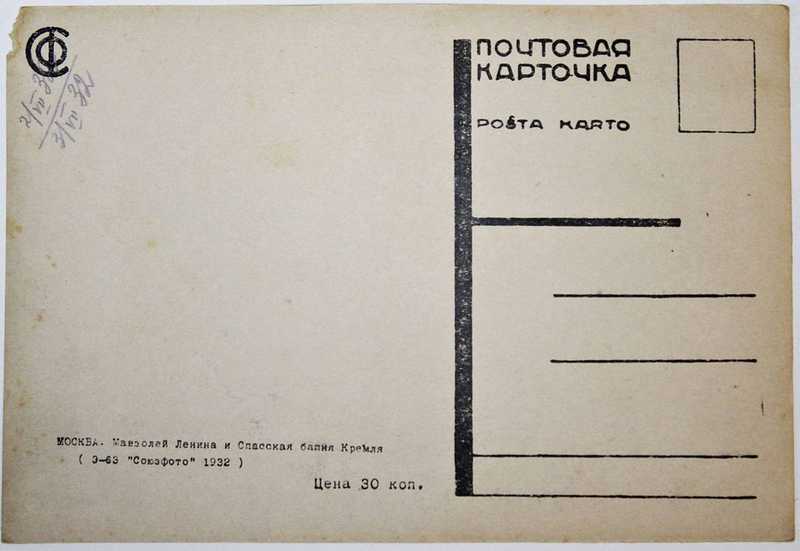 Почтовая карточка. Москва. Мавзолей Ленина и Спасская башня Кремля