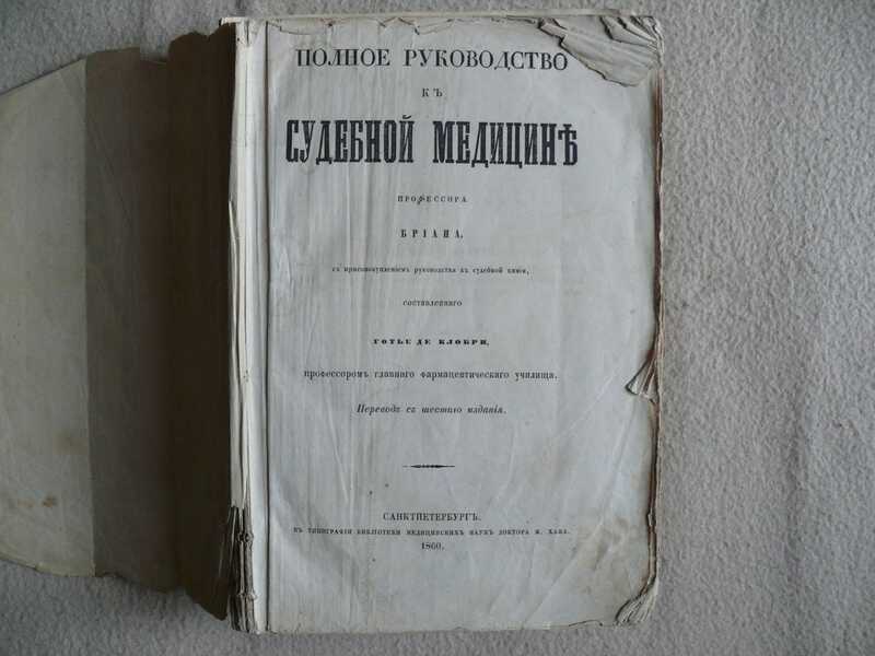 Одна из первых на русском языке книг по судебной медицине и, безусловно, на тот момент, самое подробное. Фундаментальный труд профессора Бриана посвящен различным аспектам судебной медицины. Очень большой объем – 10 разделов, более 1200 страниц!