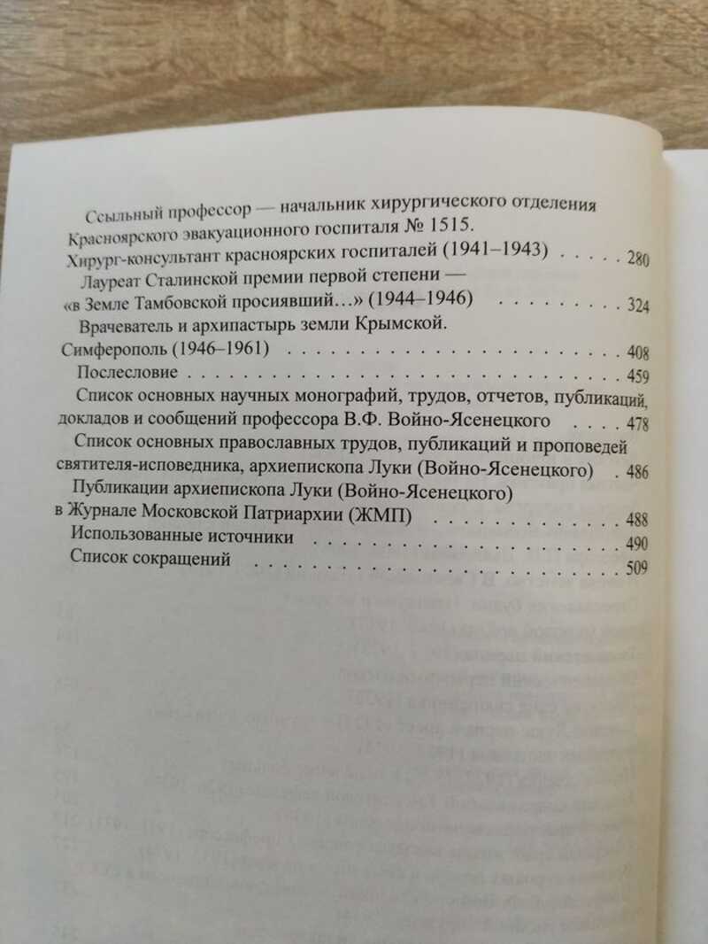 В монографии на основе обобщения значительного массива архивных и ранее опубликованных научных и публицистических материалов сообщается о жизни, активной хирургической, научной, педагогической и архиерейской деятельности выдающегося представителя отечественной медицины и иерарха Русской православной церкви, лауреата Сталинской премии первой степени, доктора медицинских наук, профессора В.Ф. Войно-Ясенецкого - архиепископа Луки. Тираж 500 экз. Оглавление на фото.