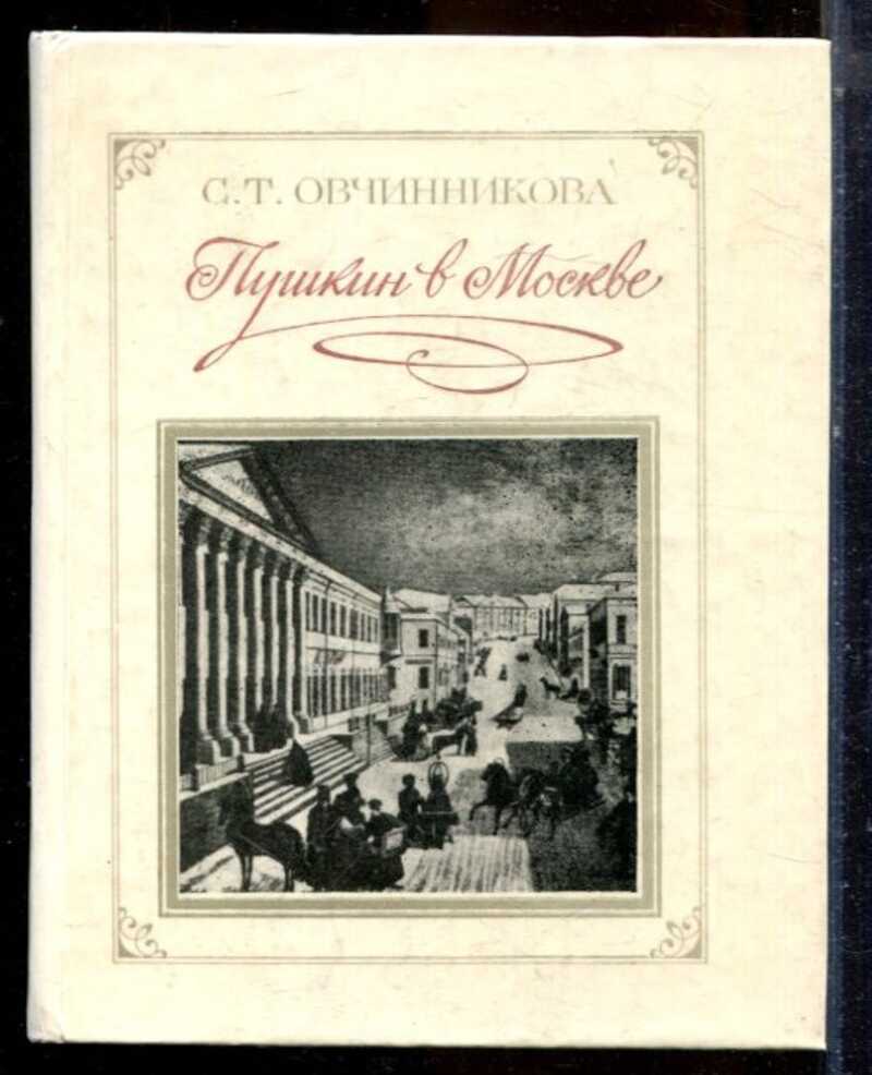 Книга С. Т. Овчинниковой «Пушкин в Москве» (М.: Советская Россия, 1985. — 256 с.) посвящена московским страницам жизни и творчества А. С. Пушкина. Автор последовательно прослеживает маршруты поэта по столице, описывает дома и места, связанные с его именем, восстанавливает контекст московской среды, влиявшей на его работу. В издании собраны сведения о встречах Пушкина с московскими литераторами, его посещениях салонов и театров, работе над произведениями в московский период. Особое внимание уделено адресам, где жил и останавливался поэт, а также кругу его московского общения. Текст сопровождается иллюстрациями — видами старой Москвы, портретами современников, редкими документами. Книга будет полезна краеведам, учителям, студентам и всем, кто хочет увидеть Москву глазами великого поэта.