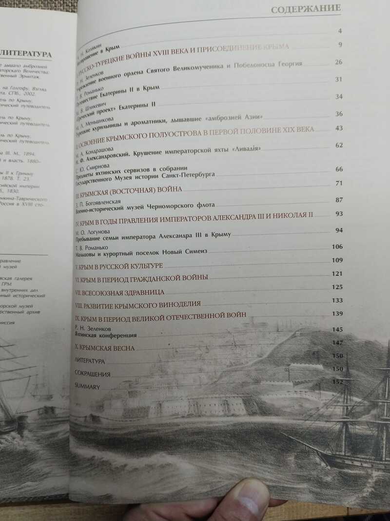 Тираж 1 000 экз. Каталог, подготовленный к выставке «Путешествие в Крым», представляет собой экскурс в историю Крыма, начиная с XVIII века, когда он вошел в состав Российской империи и заканчивая событиями современной истории. В издании публикуются произведения живописи, графики, декоративно-прикладного искусства, документы и фотографии, отражающие различные исторические этапы жизни полуострова, из собраний Государственного музея истории Санкт-Петербурга, Государственного Эрмитажа, Государственного Русского музея, Государственной Третьяковской галереи, Центрального Военно-морского музея, Военно-исторического музея Черноморского флота, Центрального музея Тавриды. Издание представляет интерес, как для специалистов, так и для широкого круга читателей, интересующихся историей.