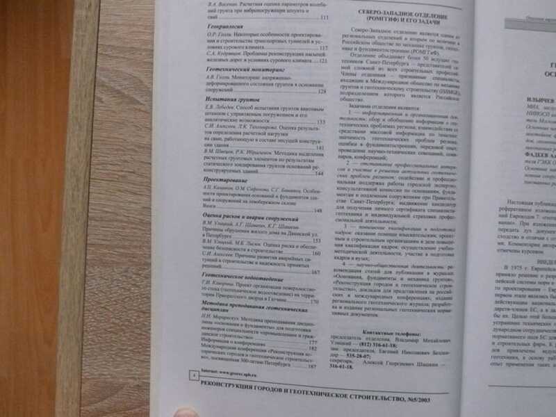 Реконструкция городов и геотехническое строительство. № 5 от 2003 года