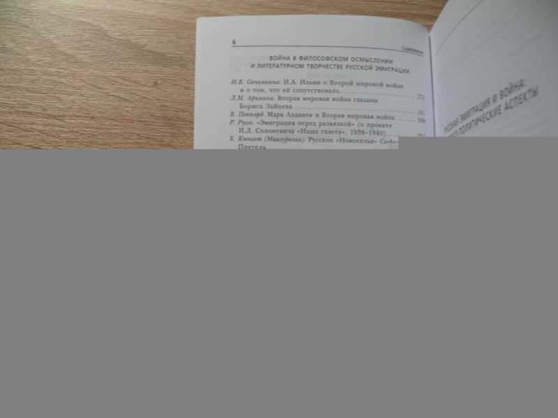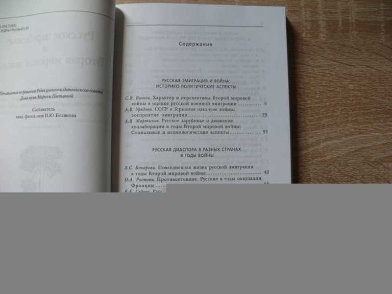 В сборник вошли статьи отечественных и зарубежных исследователей, прозвучавшие на IV Культурологических чтениях по истории русской эмиграции XX века, посвященных Второй мировой войне. Книга включает следующие разделы: «Русская эмиграция и война: историко-политические аспекты», «Русская диаспора в разных странах в годы войны», «Война в философском осмыслении и литературном творчестве русской эмиграции», «Архивные материалы и публикации». Из содержания: СССР и Германия в восприятии эмигрантов накануне войны, Русская эмиграция и коллаборационизм, Повседневная жизнь русской эмиграции в условиях оккупации, Русские в годы оккупации Франции, Русские учебные заведения в оккупированной Франции, Театр и кино в оккупированном Париже, Русская церковь в оккупированной Югославии и в Хорватии и т.д. Так же публикуются новые статьи о жизни и творчестве Марины Цветаевой.