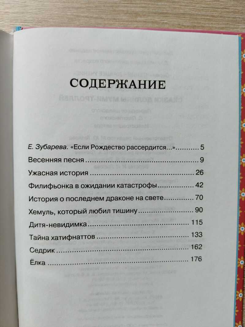 Содержание: Весенняя песня Ужасная история Филифьонка в ожидании катастрофы История о последнем драконе на свете Хемуль, который любил тишину Дитя-невидимка Тайна хатифнаттов Седрик Елка. Знаменитая детская писательница Туве Янссон придумала мумии-троллей и их друзей, которые стали знамениты на весь мир. Не отказывайте себе в удовольствии - загляните в гостеприименую долину Муми-троллей. В долине каждый день что-нибудь происходит. Однажды все бросили свои дела и принялись успокаивать Филифьонку, которая вдруг стала ужасной трусихой. А какой переполох поднялся, когда Муми-тролль нашел дракончика, но не простого, а последнего в мире! Еще в долине все прекрасно помнят, что случилось после того, как зверек Снифф решил подарить своего любимца Седрика. Но настоящая суматоха началась зимой, под Новый год, когда Муми-папа принес елку, но никто не знал, что с ней делать дальше. Праздник вот-вот наступит, а у обитателей долины нет ни угощения, ни подарков!