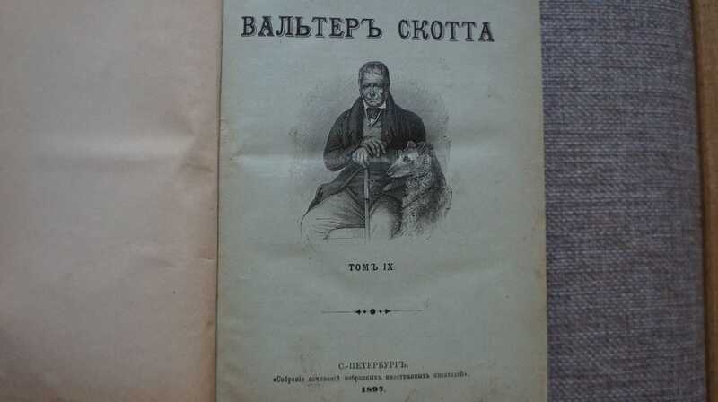 9-10 том антикварного издания В.Скотта 1897 года под одной обложкой. Сэр Вальтер Скотт (1771-1832 гг.) - известнейший шотландский писатель, поэт, историк, адвокат. Большинство его произведений посвящено истории родной Шотландии. Вальтер Скотт считается создателем жанра образцового исторического романа. Исторические романы его имели огромную популярность в России и переводились сразу после выхода книг на английском языке. Книги Скотта высоко ценила принцесса Дагмара - будущая российская императрица Мария Федоровна. Данное собрание сочинений напечатано в Санкт-Петербурге в типографии братьев Пантелеевых, специализировавшейся на издании художественной прозы. Здесь издавался журнал `Вестник иностранной литературы` и выходила серию собраний сочинений отечественных и зарубежных писателей-классиков.