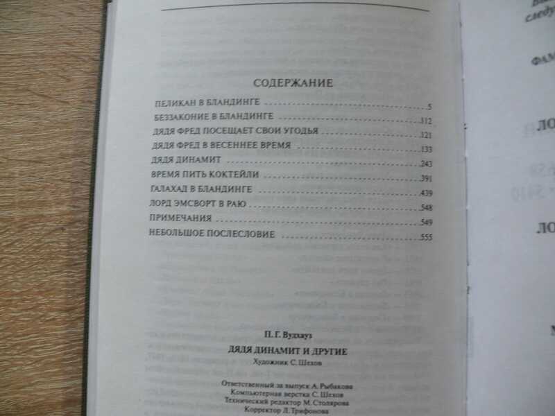 Пеликан в Бландинге. Беззаконие в Бландинге. Дядя Фред посещает свои угодья. Дядя Фред в весеннее время. Дядя Динамит. Время пить коктейли. Галахад в Бландинге. Лорд Эмсворт в раю. Стоит леди Икенхем ненадолго уехать и оставить без присмотра своего супруга, как Фредерик Алтамонт Корнуоллис, пятый граф Икенхемский, с большой пользой для себя, но с немалым риском для окружающих пользуется полученной свободой. И его племяннику Реджинальду по прозвищу Мартышка не остается ничего другого, как становиться соучастником дядиных проделок, ведь дядя Фред, несмотря на возраст, «истинный динамит»... Американский биограф Дэвид А.Джасен так характеризует творчество П.Г.Вудхауза: «Вудхауз - это самый смешной писатель в истории человечества», - и если в этих словах есть некоторое преувеличение, то оно недалеко ушло от действительности. В течение трех четвертей столетия читатели по обе стороны Атлантического океана с неизменным восторгом следили за похождениями незадачливых героев писателя. Автор более сотни романов и сборников юмористических рассказов, более тридцати пьес, многочисленных сценариев и либретто по праву стяжал мировую известность. Наследник лучших традиций английской юмористики, «гений комедии» (так называла его лондонская Таймс) покоряет легкостью стиля, детально проработанной сюжетной канвой. Его обычно называют мастером комедии положений, где герои повествования вынуждены выпутываться из немыслимых ситуаций, куда их завела собственная беспечность, но яркие психологические характеристики персонажей в сочетании с мягким юмором, доходящим порой до фарса, придают произведениям Вудхауза особое очарование.