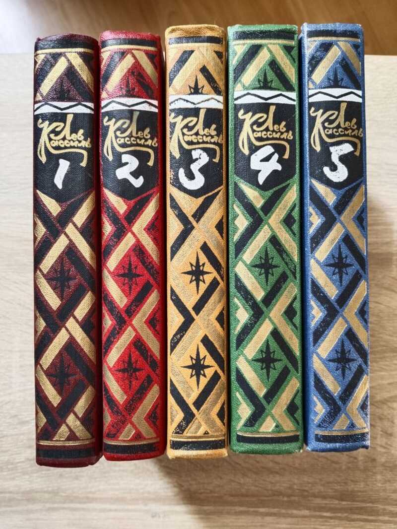 Содержание: Том 1: Вступительное слово: Анатолий Алексин. Вслух про себя. Попытка автобиографии. Кондуит и Швамбрания. Вратарь республики. Есть на Волге утес. Рассказы: Раздвоение календаря. Агитмедведь особого отряда. История с географией. Есть на Волге утес. Одна беседа. Битва при Безымянном пальце. Комментарии. Е. Таратута. Том 2: Черемыш, брат героя. Повесть Великое противостояние. Повесть. Дорогие мои мальчишки. Повесть. На краю света. Рассказы: Федя из подплава. Абсолютный слух. Состоится при всякой погоде. Барабасик. Батарейный заяц. Вторая половинка песни. Комментарии. Е. Таратута. Том 3: Линия связи. Рассказы: Рассказ об отсутствующем. Линия связи. Зеленая веточка. Все вернется. У классной доски. Отметки Риммы Лебедевой. Держись, капитан! Улица младшего сына. Повесть, написана в содружестве с М. Поляновским. Портрет огнем. Рассказы: Портрет огнем. Ночная ромашка. Огнеопасный груз. Солнце светит. История с бородой. Комментарии. Е. Таратута. Том 4: Ход белой королевы. Роман. Чаша гладиатора. Роман. По морям, по волнам. Рассказы: `Диско`. Вдова корабля. Губернаторский пассажир. Матч в Валенсии. Пекины бутсы. Ученик чародея. `Трансбалт`. Будьте готовы, Ваше высочество! Повесть. Комментарии. Е. Таратута. Том 5: Ранний восход. Повесть о юном художники. (На вкладной тетради рисунки Коли Дмитриева). Маяковский - сам. Очерк жизни и работы поэта. Чудо Гайдара. Очерк. Шагнувший к звездам. Очерк. Пометки и памятки. Из записей разных лет: Чудесный фонарь и `курносые`. Два рукопожатия. Рассвет в Щелкове. Ледовый комиссар. Имени Котовского. Вставка в кинофильм `Чапаев`. Деревцо у школы. Сердце и руки художника. `Глядельца` в незабываемое. Отмщение. Дорогою славных. Лев Кассиль, его герои, книги и друзья. В. Смирнова. Комментарии. Е. Таратута.