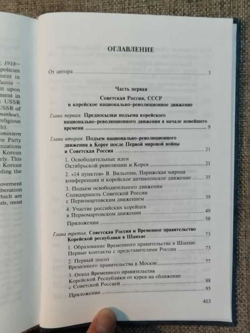 В книге на основе нововыявленных материалов архивов РФ исследуются политка СССР и Коминтерна в отношении корейского освободительного движения, Первомартовского движения 1919 года и религиозно-политического общества "Чхондогё". Тираж 400 экз.