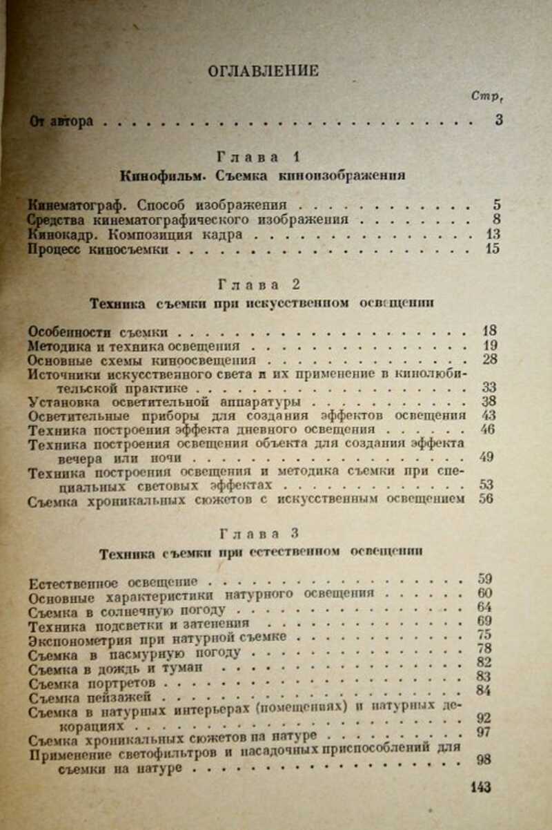 Книга содержит описание методики и техники главнейших, наиболее распространенных в практике кинолюбителей случаев съемки при искусственном и при естественном освещении, а также дает ряд практических советов по технике съемки. Автор использует опыт отечественной профессиональной кинематографии, откуда черпает терминологию и основы методики работы. Особое внимание в книге уделяется технике и методике проведения натурных и хроникальных съемок. Текст иллюстрирован рисунками и схемами.