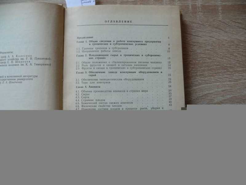 Освещаются вопросы плодовоовощеконсервного производства в условиях субтропического и тропического климата. Показано, как объем, химический состав и биологические особенности плодов и овощей влияют на технологический процесс переработки и качество готового продукта. Рассматриваются вопросы технологических процессов съема, транспортировки, приемки и хранения тропических и субтропических плодов, технологии переработки плодов. Тираж 3000 экз.