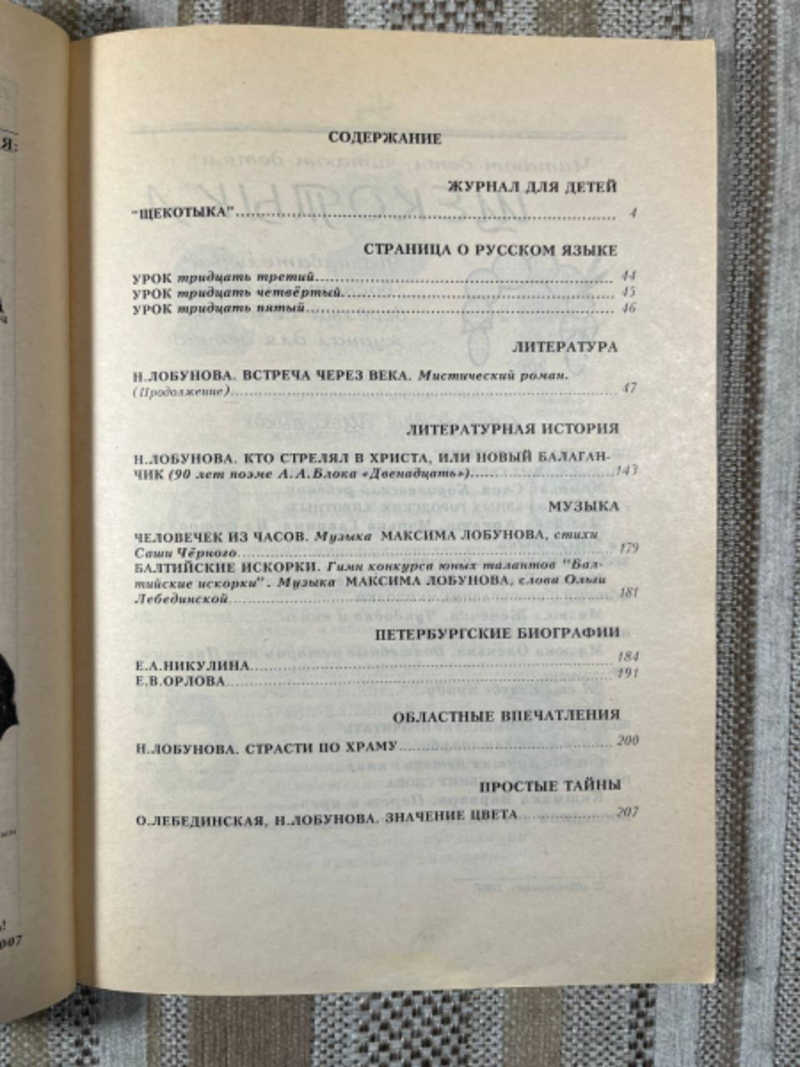Культурологический журнал для детей и взрослых. В журнале всегда новые проза, лирика, драматургия, публицистика, музыка, театральная и литературная критика, история театра и литературы, литературоведение, история, театроведение, психология, встречи с творческими людьми и много другого важного и полезного (Полка 300F)