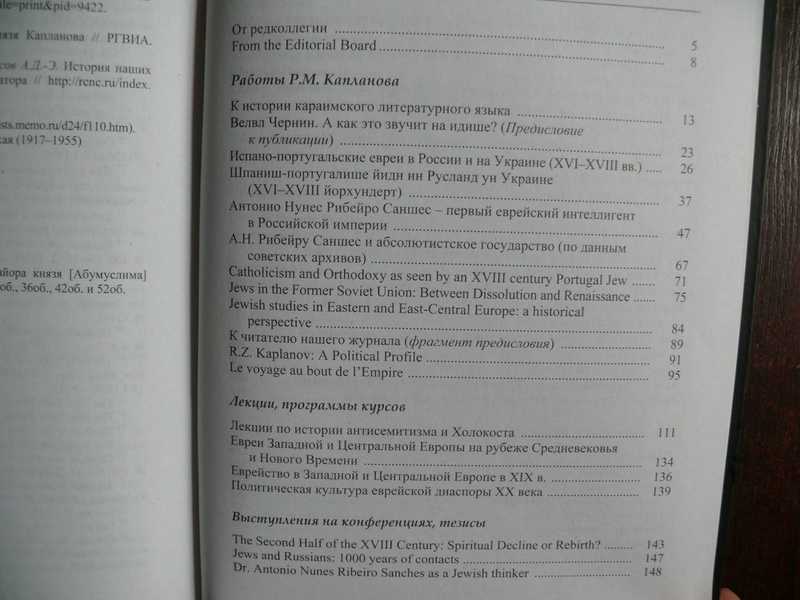Центр научных работников и преподавателей иудаики "Сэфер" издал книгу "Рашид Мурадович Капланов. Труды. Интервью. Воспоминания". Она посвящена памяти безвременного скончавшегося председателя "Сэфера" Рашида Мурадовича Капланова (1949-2007) - известного ученого в области иудаики и замечательного педагога. В сборник вошли написанные в разное время работы профессора Р. М. Капланова по иудаике, записи его некоторых лекций, рецензии, тезисы выступлений на различных конференциях и конгрессах, интервью разных лет. Особый раздел книги составляют воспоминания о Рашиде Мурадовиче его родственников, друзей, коллег и учеников. Как отмечается в предисловии к сборнику, "в этих воспоминаниях воссоздается портрет эпохи - через образ ее нетипичного представителя". Завершает сборник список трудов Р. М. Капланова. В приложении помещено исследование о генеалогии рода Каплановых. В книгу включен целый ряд фотографий, представляющих жизненный путь ученого. Тираж 600 экз.