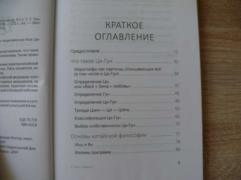 В данном, первом томе приводится теоретическая база Ци-Гун. Первый раздел книги дает общее представление: что такое Ци-Гун, Цзин, Ци, Шэнь и какова их взаимосвязь. Также приводится классификация Ци-Гун и пр. Во втором разделе описываются базовые понятия китайской философии: Инь и Ян, Восемь триграмм, Пять элементов, использование нумерологии в Ци-Гун и пр. Третий раздел содержит основы китайской медицины: плотные и полые органы Цзан-Фу, 12 регулярных меридианов, их взаимосвязь и связь с ладонями и стопами, чудесные сосуды, акупунктурные точки, 3 Дань-Тянь, Малый и Большой небесные круги. Для всех интересующихся самосовершенствованием и улучшением здоровья, а также древней духовной культурой Китая.