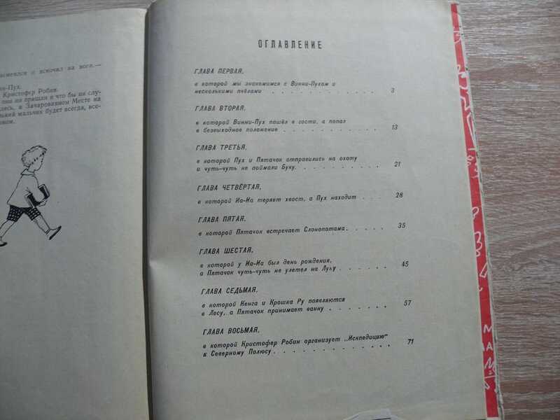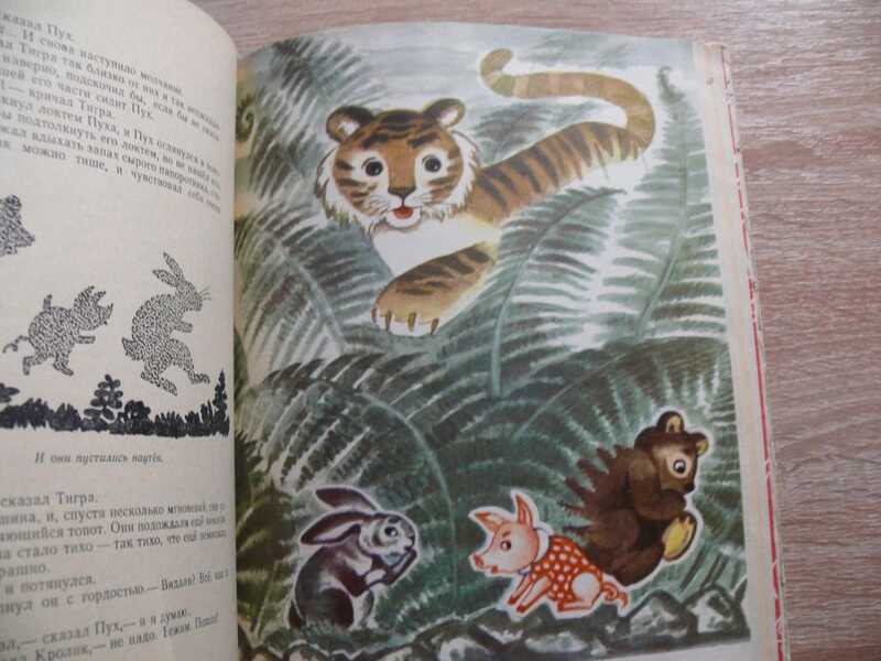Великолепные рисунки ученицы П. Филонова Алисы Порет, первого иллюстратора русских изданий рассказов о Винни-Пухе ( 1960 год). Черно-белые картинки почти на каждой странице и цветные на восьми вклейках. Цветные иллюстрации абсолютно другие по сравнению с 1960 годом.