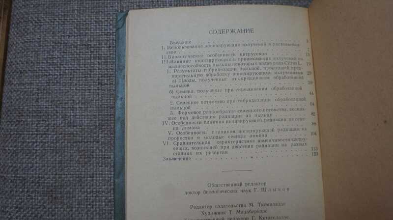 Работа Н. Г. Сихарулидзе является результатом ее многолетних исследований, направленных к познанию влияния радиоактивных излучений на организм древесных растений.