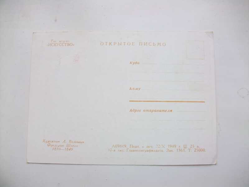 Цветная почтовая карточка с портретом Шопена.