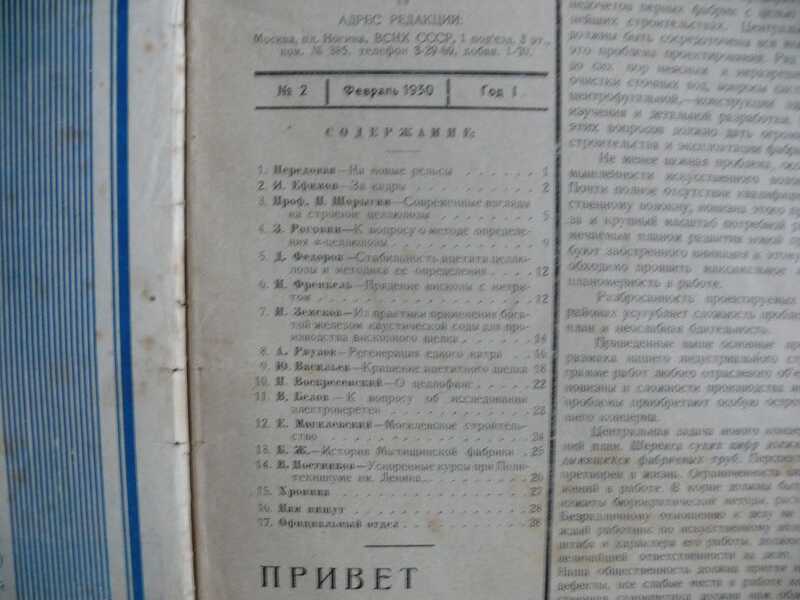 Орган Всесоюзного объединения Научно-технического Совета Промышленности искусственного волокна ВСНХ Оригинальные фотографии. Тираж 1200 экз.