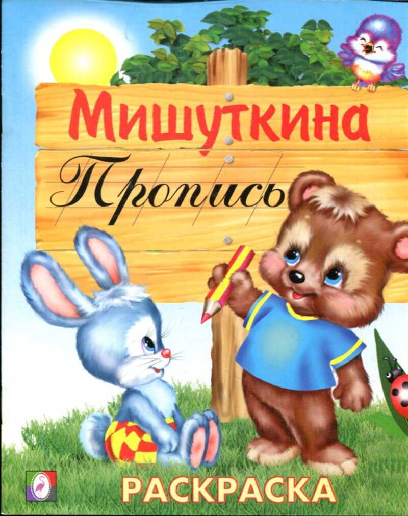 «Мишуткина пропись?раскраска» — учебное пособие, совмещающее элементы прописи и раскраски. Ребёнок может обводить контуры букв, цифр или простых форм, а затем раскрашивать изображения. Помогает подготовить руку к письму, развить координацию и интерес к творчеству.