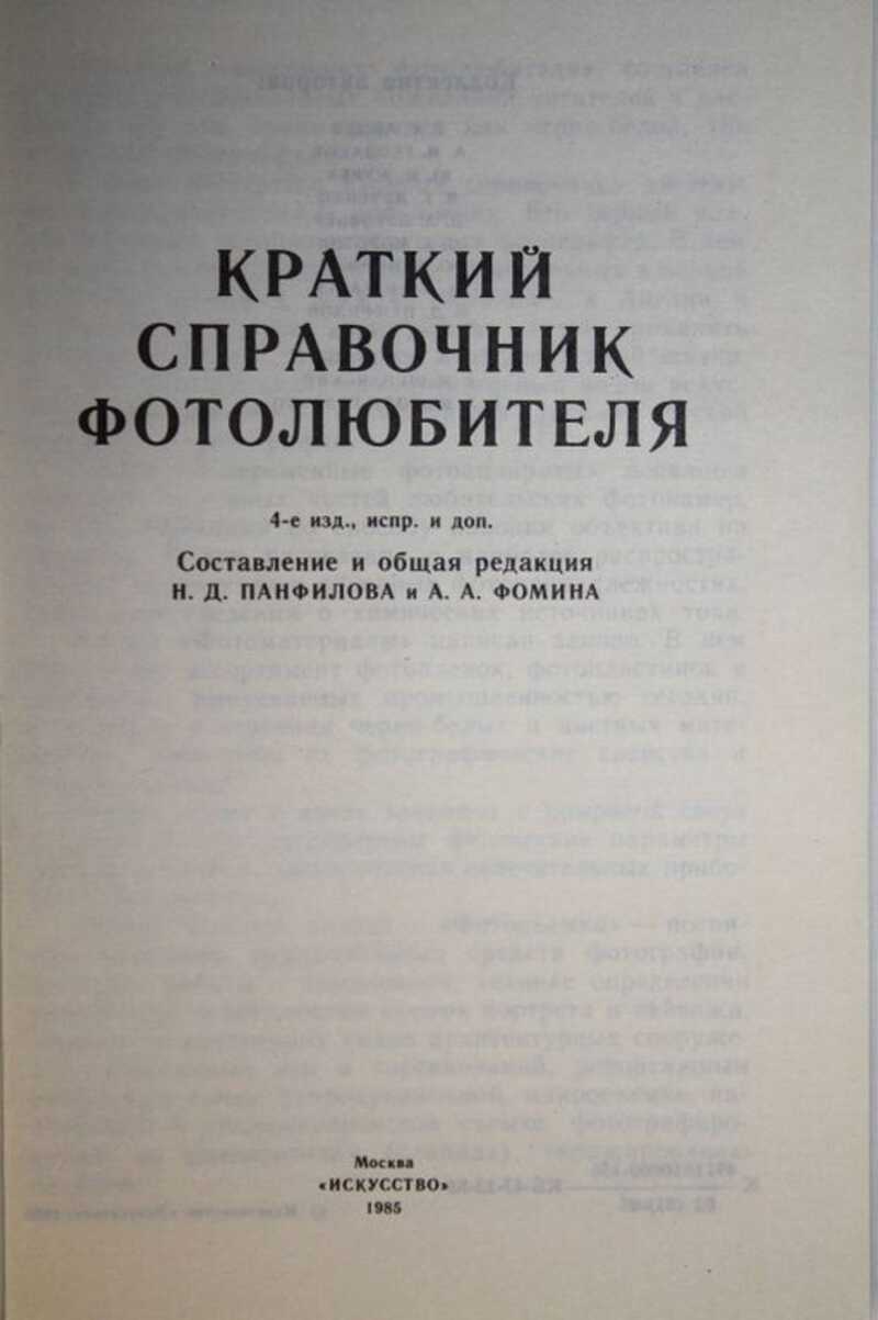 Краткий справочник фотолюбителя