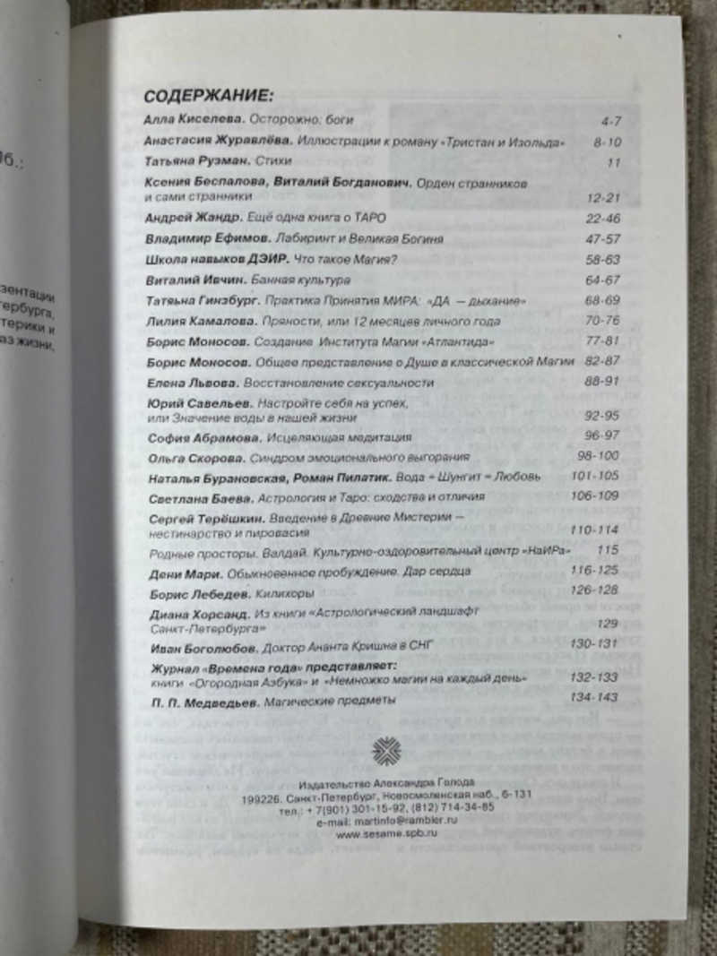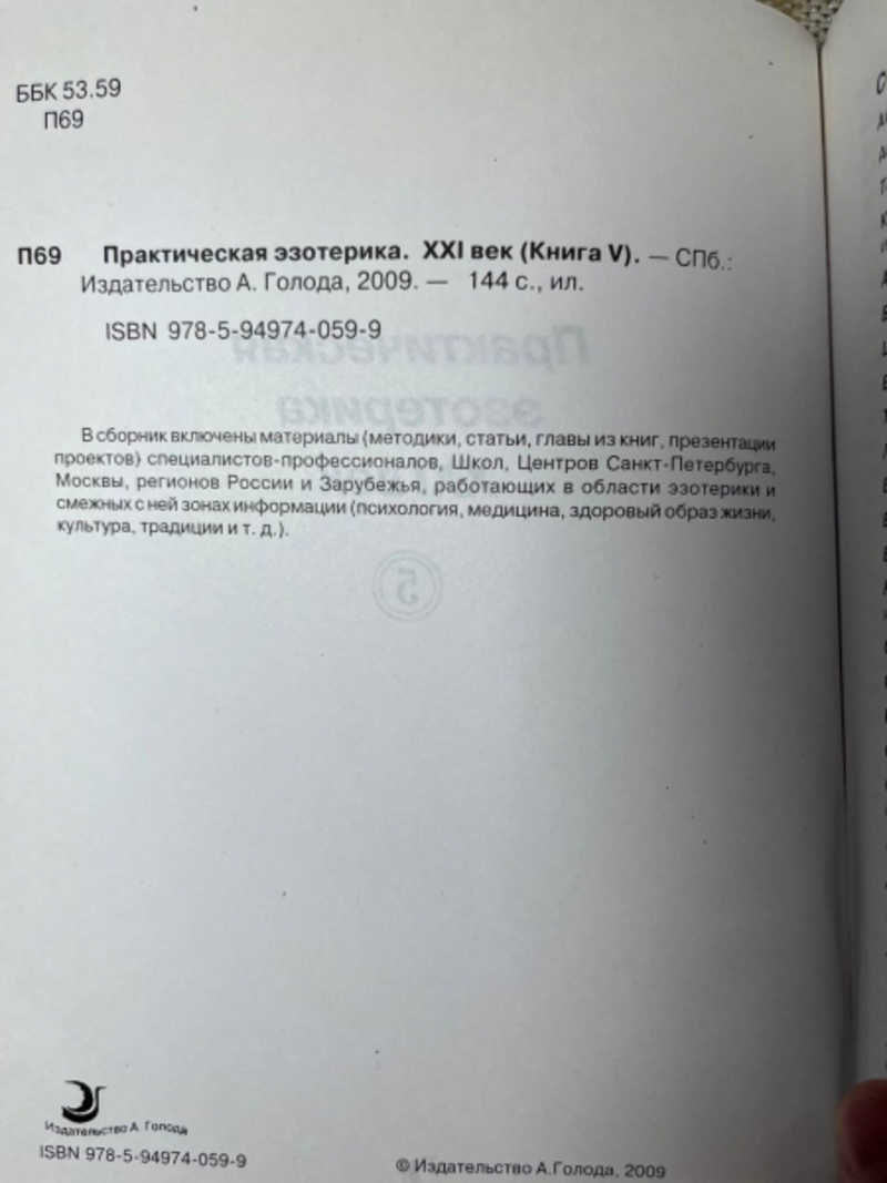 В сборник включены материалы (методики, статьи, главы из книг, презентации проектов, специалистов-профессионалов, Школ, Центров Санкт-Петербурга, Москвы, регионов России и Зарубежья, работающих в области эзотерики и смежных с ней зонах информации (психология, медицина, здоровый образ жизни, культура, традиции и т. д.). (Полка 300F)