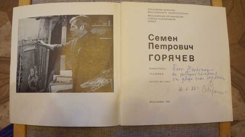 С развернутым автографом художника. Выставка произведений таланливого ярославского худажника Семена Петровича Горячева, члена Союза художников РФ, председателя Ярославского Союза художников, лауреата областной премии им. Опекушина. Тираж 1000.экз.