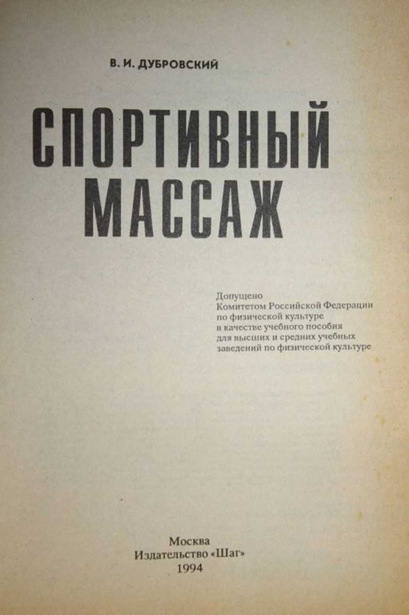 Тираж 10 000 экз. Учебное пособие написано в соответствии с программой изучения массажа в высших и средних учебных заведениях . В учебном пособии отражен современный научный подход к применению различных видов массажа. Большое внимание уделено анатомо-физиологическому обоснованию техники и методики применения массажа на основании новых данных о механизме влияния массажа на ту или иную функциональную систему. Широко освещены вопросы реабилитации спортсменов после травм и заболеваний с использованием массажа. Кроме того, в пособие включены разделы по применению тейпов, мазей, специальных упражнений на растягивание соединительнотканных образований опорно-двигательного аппарата, физио- и гидротерапии и др. Пособие рассчитано на студентов высших и средних специальных учебных заведений, а также на спортивных врачей, тренеров, массажистов...